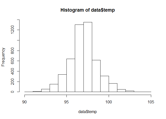 ## $ temp : int 97 98 97 98 98 97 97 98 96 98 ...
