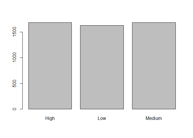 Now if we tried to plot the variable, we can see some instights. Using the plot() function on a categorical variable will give us a frequency barplot of groupings in the vector